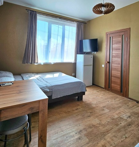 В номере: мебель, кондиционер, телевизор, холодильник, стол, стулья, кухонная зона, микроволновка, чайник, газовая плитка(баллоны приобретаются отдельно), посуда, шкаф, веранда или балкон.